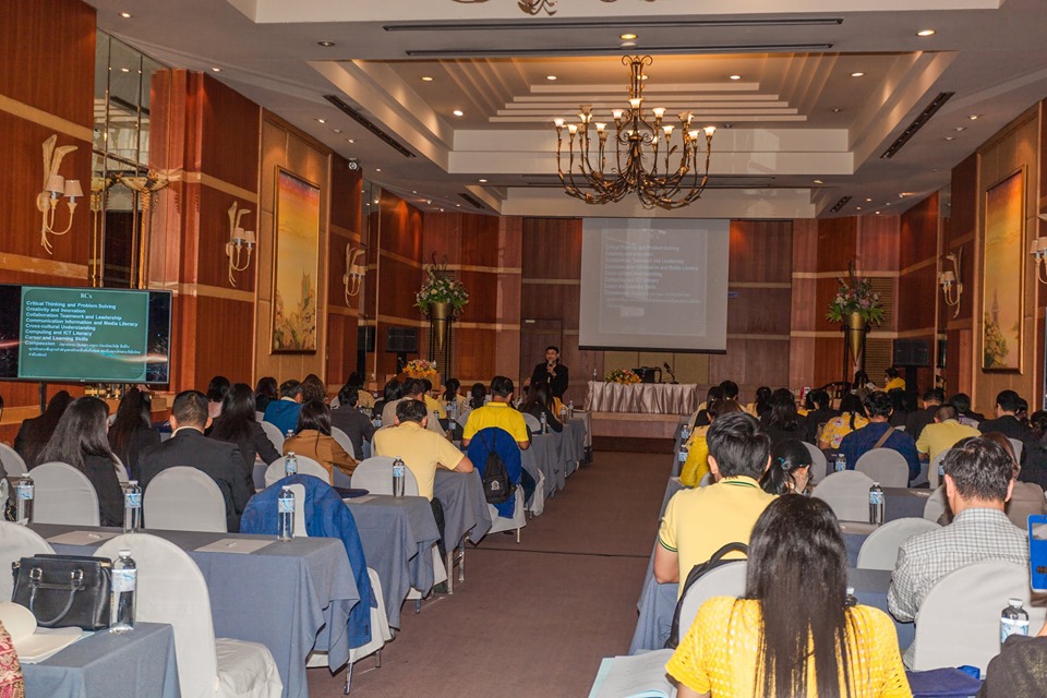 ในภาพเป็นการอบรมเชิงปฏิบัติการการบริหารจัดการชั้นเรียนสู่ประเทศไทย 4.0 (Classroom Management) โดยวิทยากรคือ ผู้ช่วยศาตราจารย์ ดร.สุทธิพงศ์ บุญผดุง และคณะ