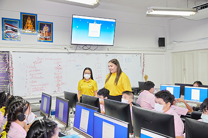นักเรียนชั้นประถมศึกษาปีที่ 6 ทดลองทดสอบความสามารถด้านภาษาอังกฤษ Edsy Ai Coach เพื่อทดสอบทักษะด้าน ฟัง พูด อ่าน เขียน ภาษาอังกฤษ