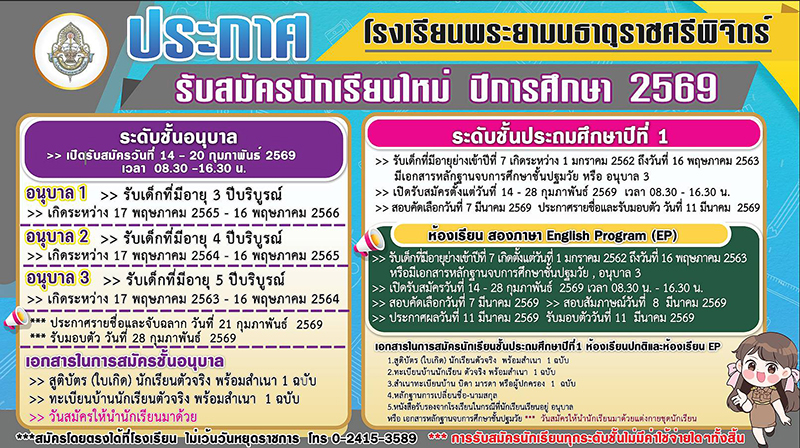 14 ก.พ. 69 บรรยากาศการรับสมัครนักเรียนชั้นอนุบาลและ ป.1
